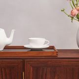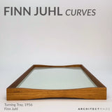 Turning Tray was designed in 1956 by Finn Juhl, bearing his trademark curved teak frame and precise corner joints. Made without handle bars, the tray’s curvature allows space to pick it up.