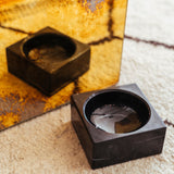 Similarly, PK-Marble combines the timeless Nero Marquina marble of PK-600 with the size of PK-Bowl, with its smooth, rounded inner black marble surface reflecting light, adding contrasts to the raw, unpolished exterior.