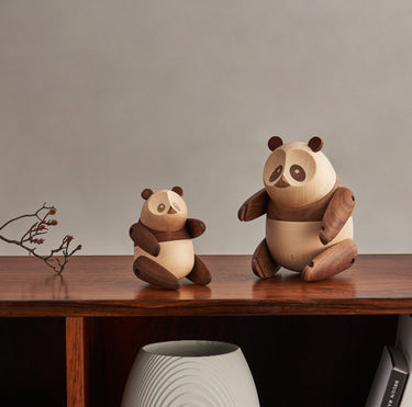 The wood Hans Bøllingen figure Panda, designed by BIG, is available in two sizes: small and large. The upper body rotates on the lower body and the arms and legs are movable.